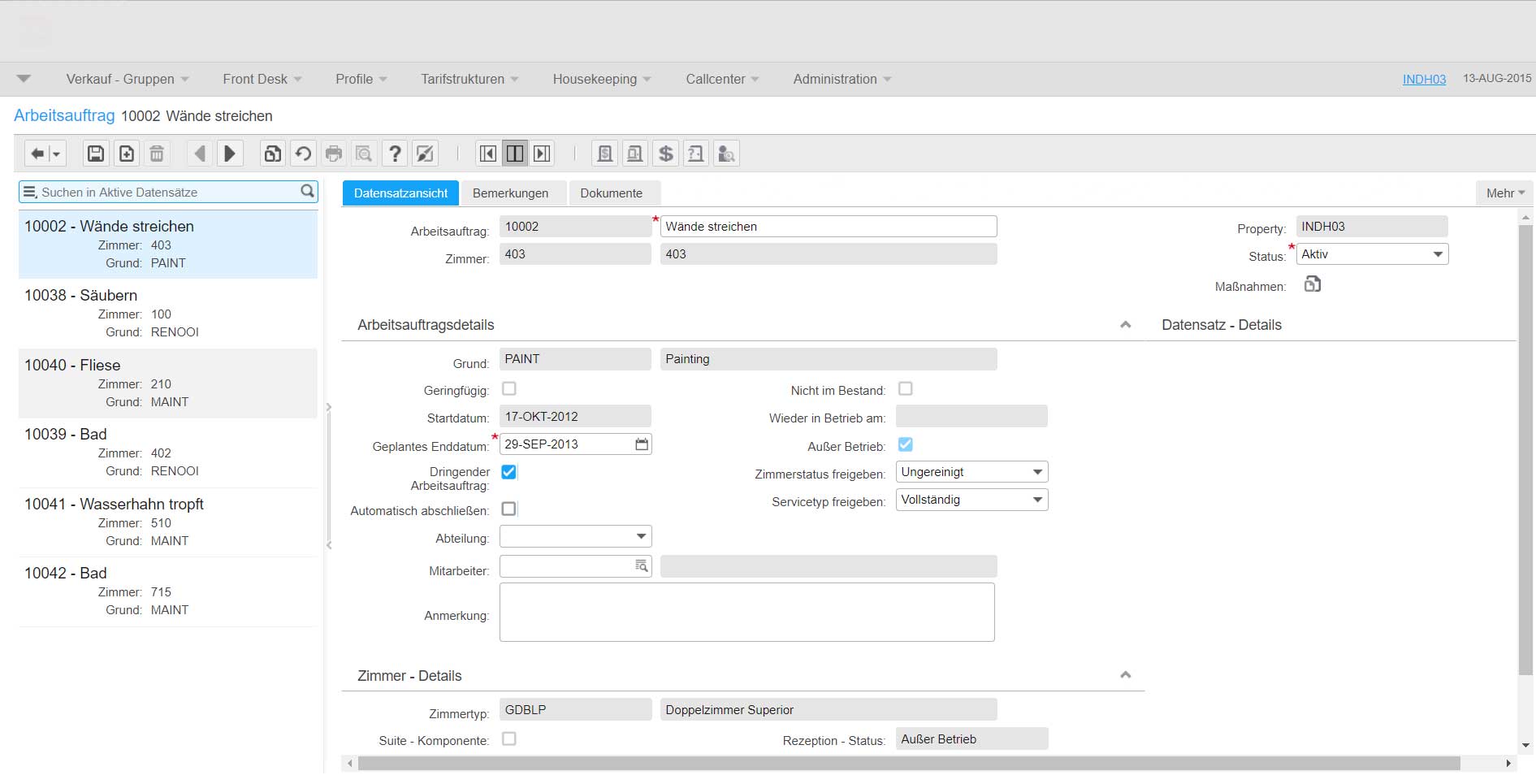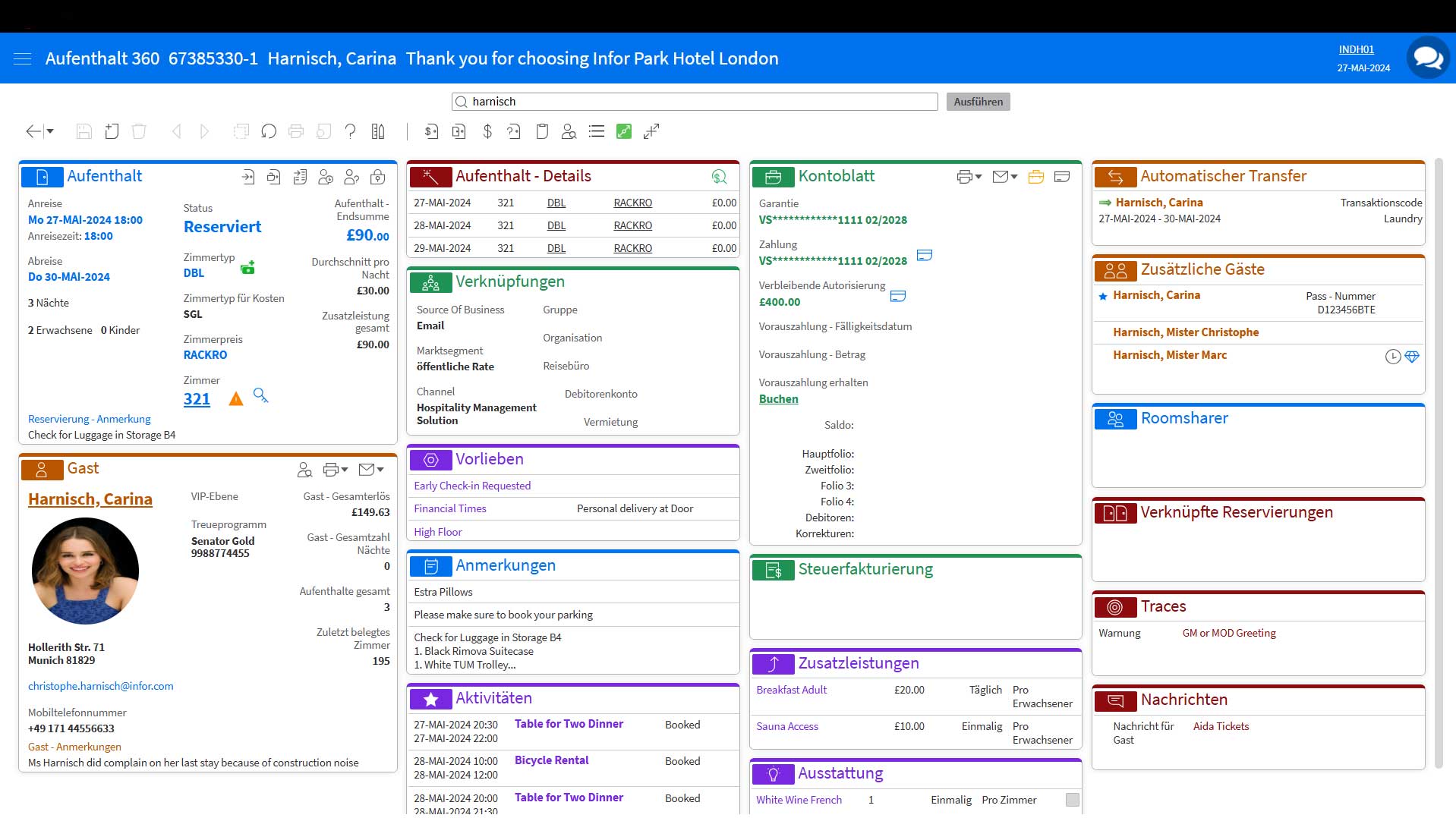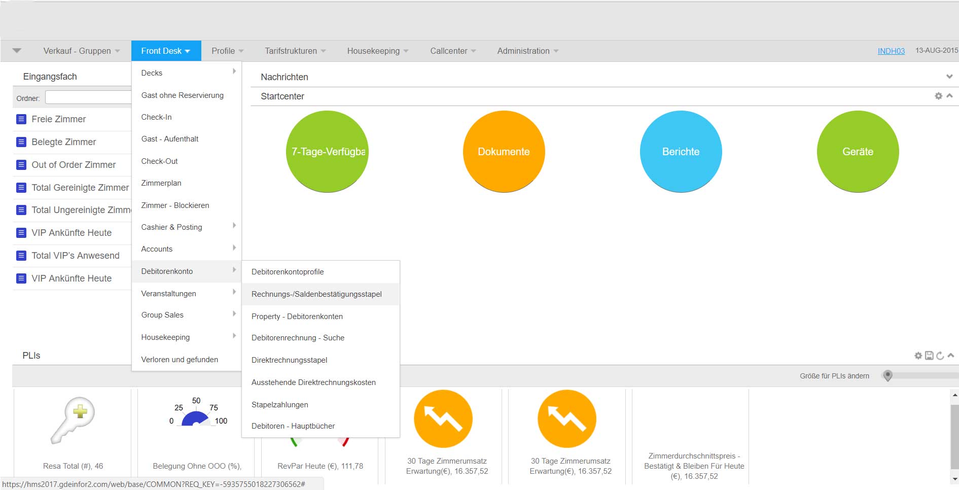 - Dashboards, für Front Office, Reservierung, Housekeeping, Finance und Hotel – Management.