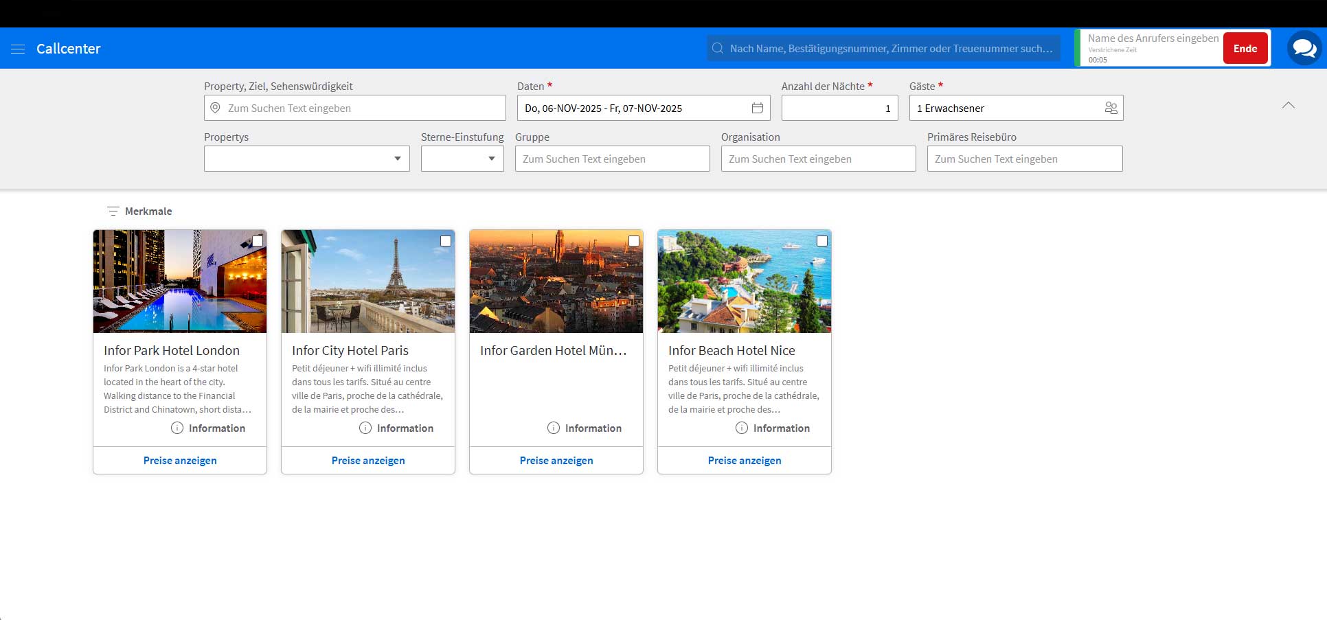 - Verfügbarkeit in Zahlen oder als Zimmerplan
